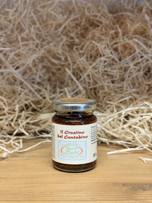 Prepare delicious appetizers in an instant with "Il Crostino del Contadino." A rustic and savory spread, made with a mix of simple and genuine vegetables and ingredients, ideal for spreading on toasted bread slices to create irresistible crostini. Perfect for aperitifs or as a starter.